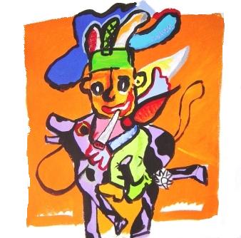 Omdat het werk 'Cowjoggie' (zie afbeelding) erg populair is, zullen er vanaf januari 2015 Zeefdrukken van dit werk bij mij verkrijgbaar zijn. Mocht je geïnteresseerd zijn en tegen die tijd vrijblijvend geïnformeerd willen worden, stuur dan een e-mail. Met groet, Tijno